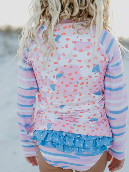 Pink and Blue Long Sleeve Rash Guard Swimsuit