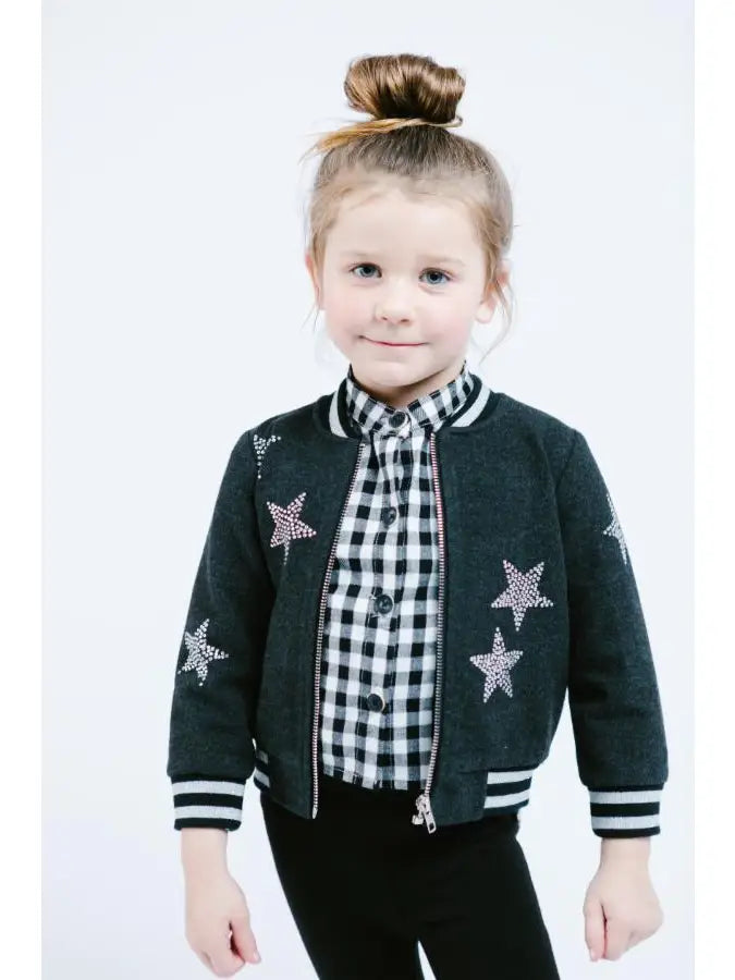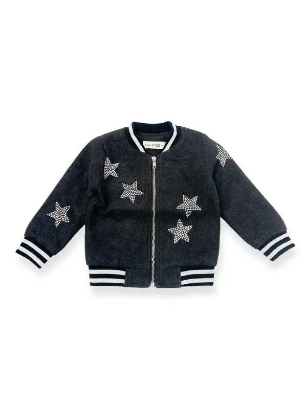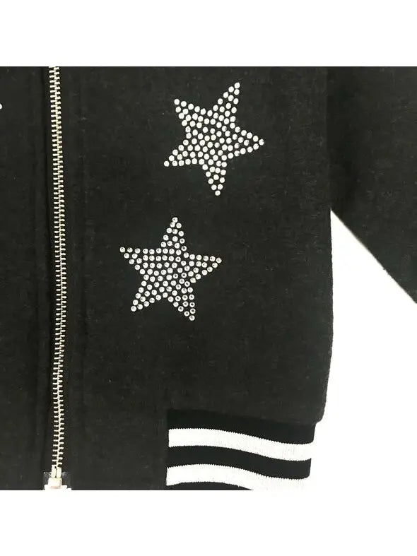 Unleash your inner star with this Star Rhinestone Bomber Jacket! Not only is it the cutest ever, but its great quality makes it the perfect winter jacket for girls. Stay warm and stylish with this must-have addition to your wardrobe.